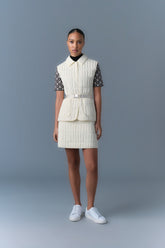 HELIA is a light-down vest with a water-repellent and windproof shell. Perfect for layering, the spread collar, vertical quilting, and snap front closure provide extra protection against the cold. Adjustable belt with buckle adds definition to the semi-fitted silhouette. Waist zip pockets are spacious while a Mackage silicone logo adds signature detailing. Multi-seasonal warmth without burdensome weight.