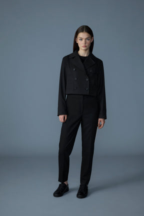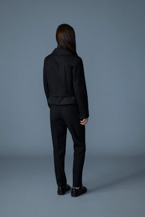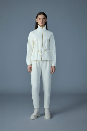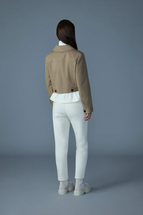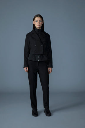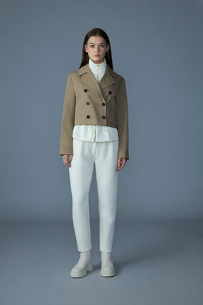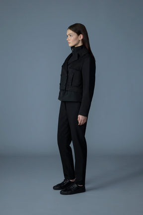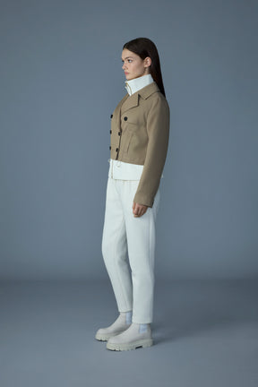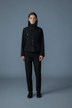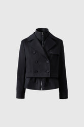 ALINE-CO is a versatile 3-in-1 jacket crafted from a durable polyester-cotton blend, designed to provide adaptable styling options. Featuring a classic double-breasted front with a wide tailored collar, this jacket includes an inner layer with an adjustable bungee waist and zippered pockets for added utility. The contrast fabric and adjustable cuffs enhance functionality, while the inner tonal “M” silicone patch and outer “MACKAGE” embroidery add subtle branding details.
