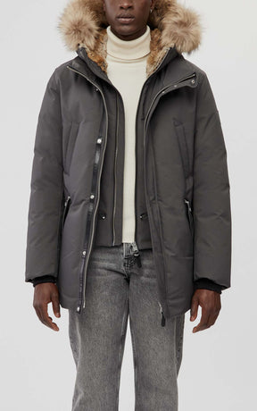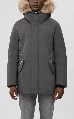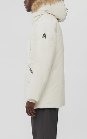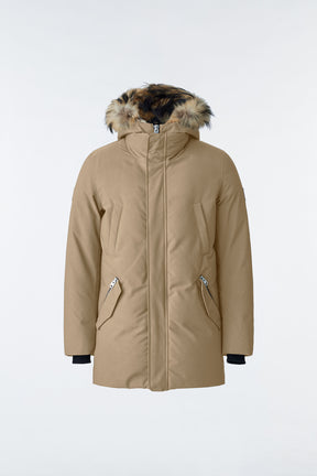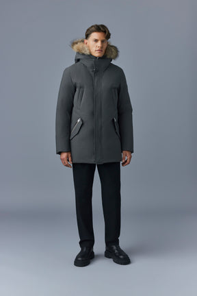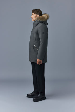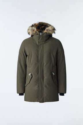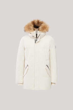 EDWARD-F Parka 2-en-1 en duvet avec plastron à capuchon et col en fourrure naturelle pour hommes