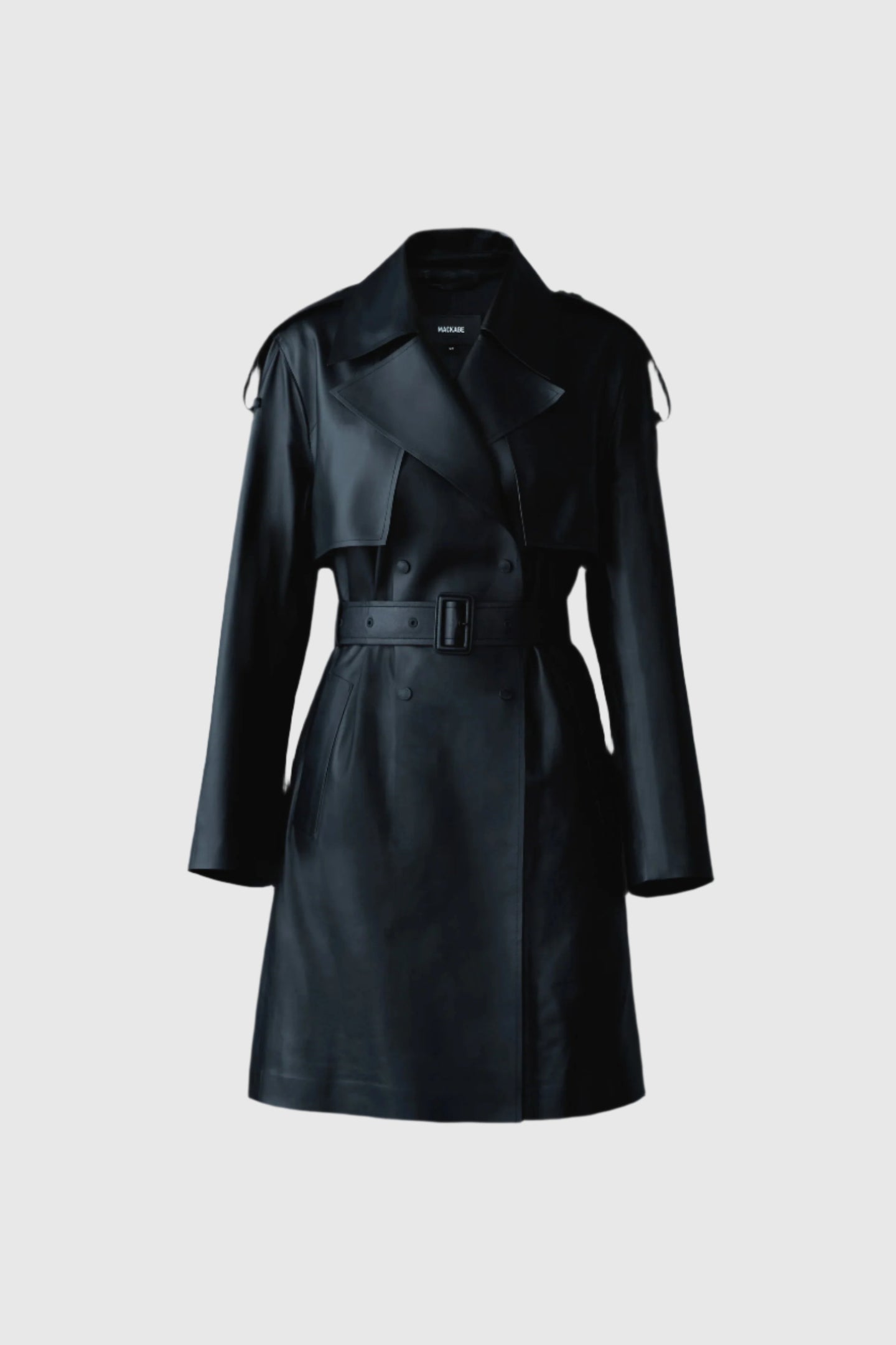 EVELINA Manteau long 2-en-1 en cuir d'agneau avec manches amovibles