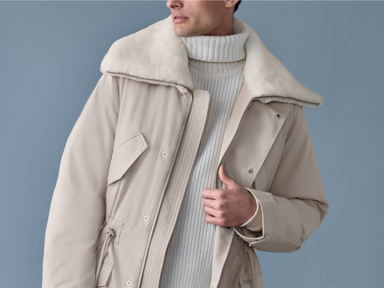 RILEY manteau classique en duvet avec plastron amovible en peau de mouton