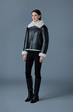 BETTY Manteau 2-en-1 réversible en cuir et rason
