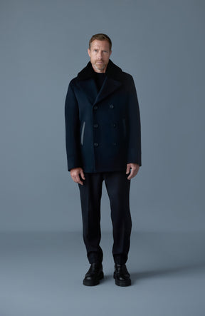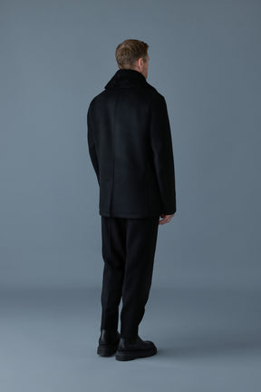 Le caban en lainage à double boutonnage classique COLE est surmonté d'un col de rason amovible. Affichant une coupe régulière et un col à revers crantés, il est doté de poches de cuir à bordures peintes à la taille et de boutons de corne lui prêtant un look nostalgique. La doublure matelassée intégrale assure un confort optimal et une protection contre le froid. Un essentiel intemporel d'une élégance pratique.