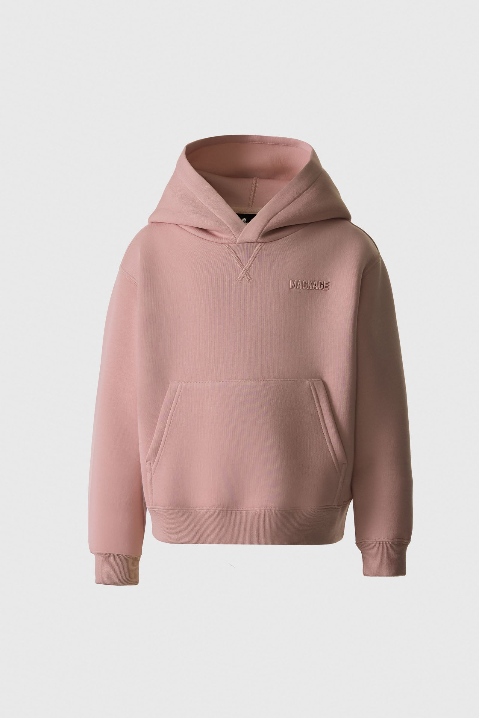 Le chandail à capuchon en jersey double face ultra-doux pour tout-petits DRU-TR présente une poche kangourou classique. Avec sa silhouette décontractée parfaite pour les looks à superposition, il est orné du logo MACKAGE en silicone sur la poitrine. Des poignets et un ourlet en tricot à côtes ajoutent au confort de ce haut. L'essentiel intérieur-extérieur en toute saison pour les petits explorateurs.