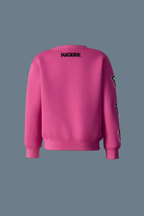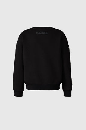 Le haut de survêtement en jersey double face pour tout-petits SAWYER-TNV est agrémenté du logo signature MACKAGE à la poitrine et d'un motif brodé d'éclairs et d'étoiles sur les manches. L'encolure ras du cou, les poignets et l'ourlet en tricot à côtes lui prêtent un style classique. Un article de prêt-à-porter moderne et raffiné pour les enfants.
