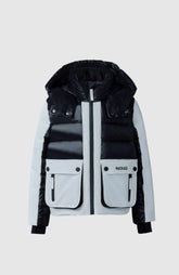 ANDRE-T is a down ski jacket for toddlers featuring a removable snap hood fitted with an elasticated storm visor. Designed for comfort with a mixed-media stretch shell and built for customizable warmth with a detachable snow skirt. Insulated double-entry waist pockets add further protection for days out in the snow. Made for the wear and tear of little ones on the mountain.