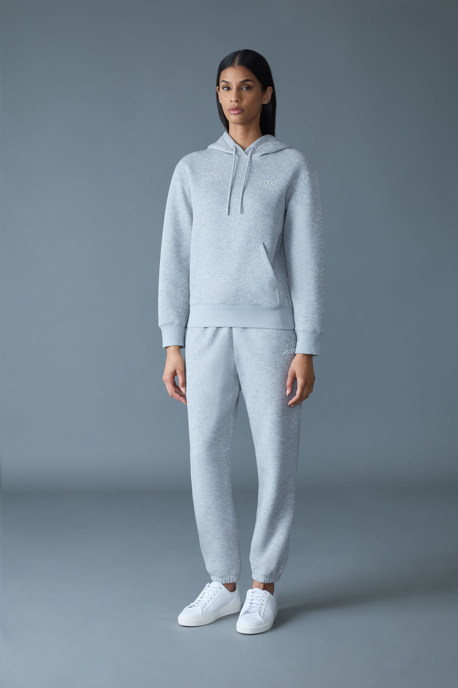 KRYSTIANA is a classic hoodie crafted to a relaxed fit from double-face jersey. The kangaroo pocket and rib knit trims add timeless detail. A luxe loungewear essential for elevated streetstyle.