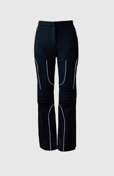 MAIKA are ski pants made with techno fleece and elasticized smocked detailing for ease of movement. Crafted from a water resistant, repellent, and windproof two-layer fabric, it features a scuff guard and water-resistant zippers for snow proof protection. Fitted cut with padded detailing at knees ensure optimal fit and sleek slopestyle.