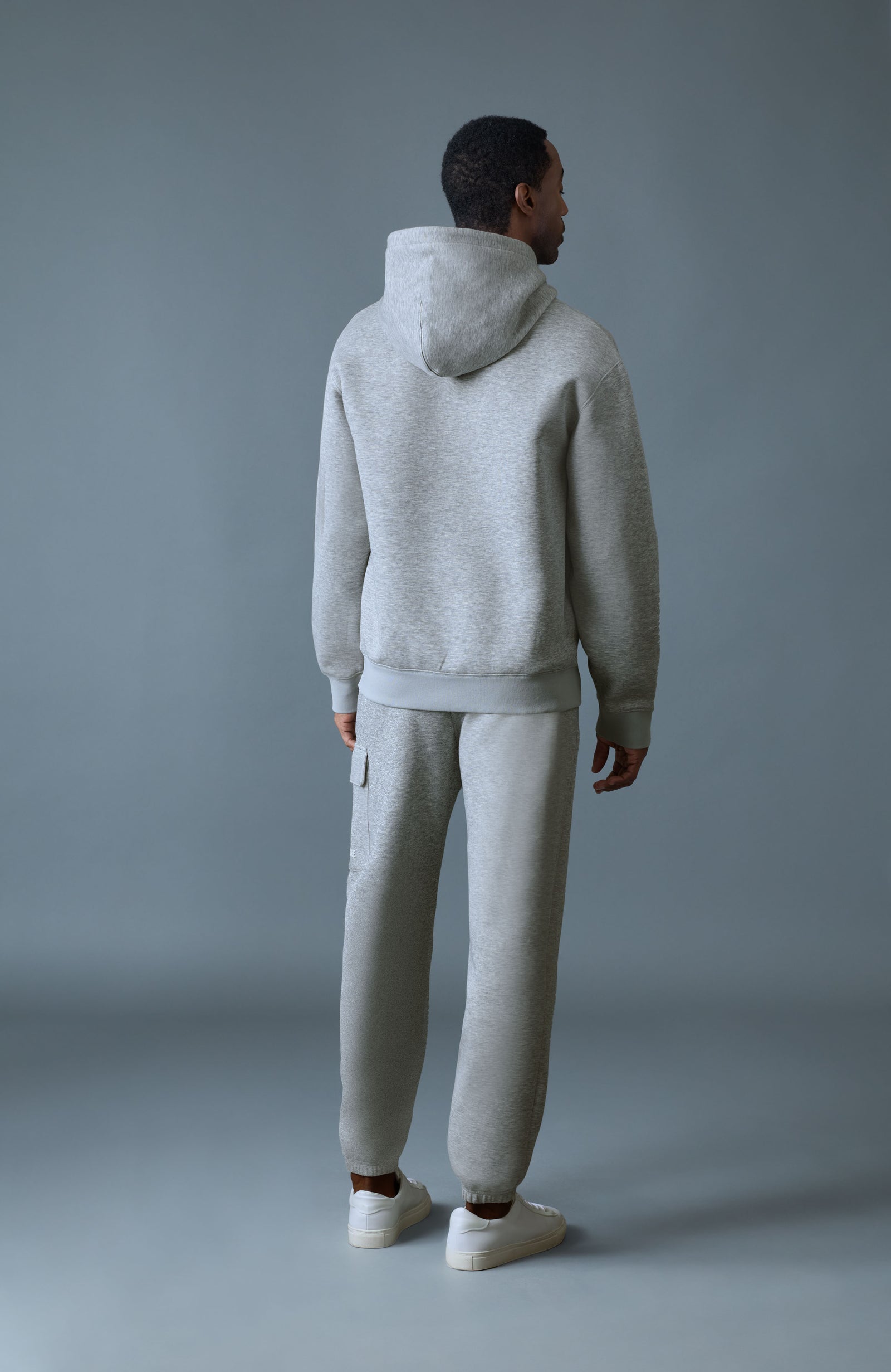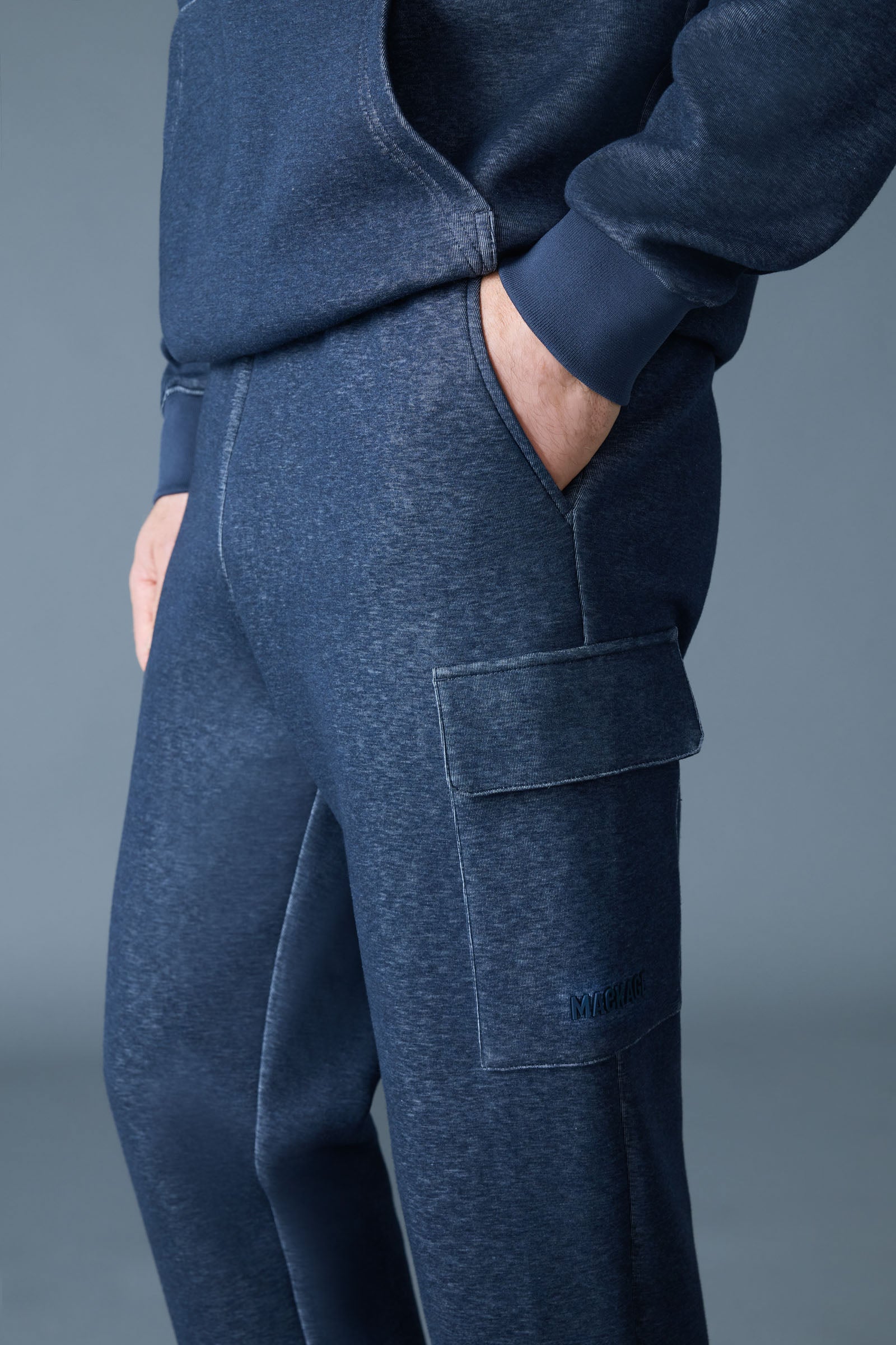 MARVIN-R are mixed-media sweatpants crafted from soft double face jersey. A remastered cargo style, it features a large flap patch pocket and elasticated cuffs for utilitarian comfort. Slash waist pockets add further functional detail. An ultra comfortable staple with elevated edge.