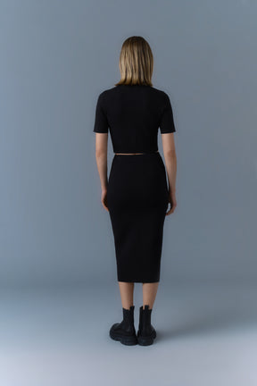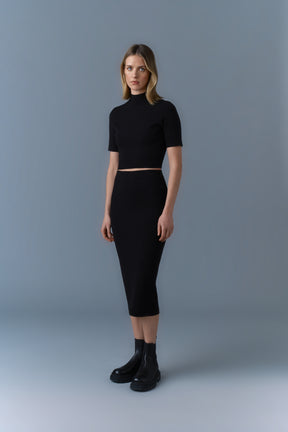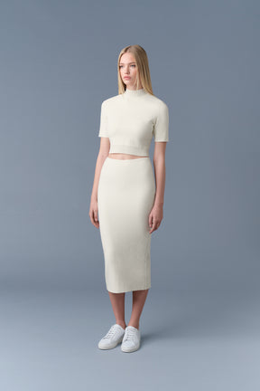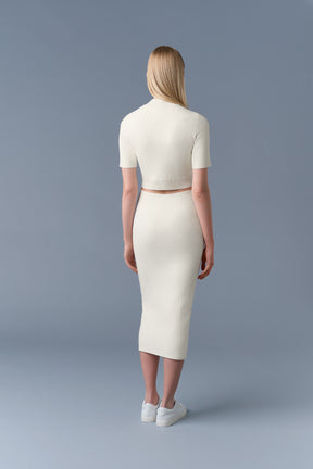 WYNONA is a compact stretch visco-blend pencil skirt. Side seam closure with invisible zipper for a classic seamless look.